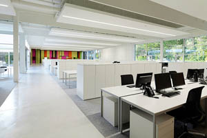 透過點、線、面的延伸與連結(jié),形構(gòu)出開闊的空間表情,在區(qū)域之間的界定上,